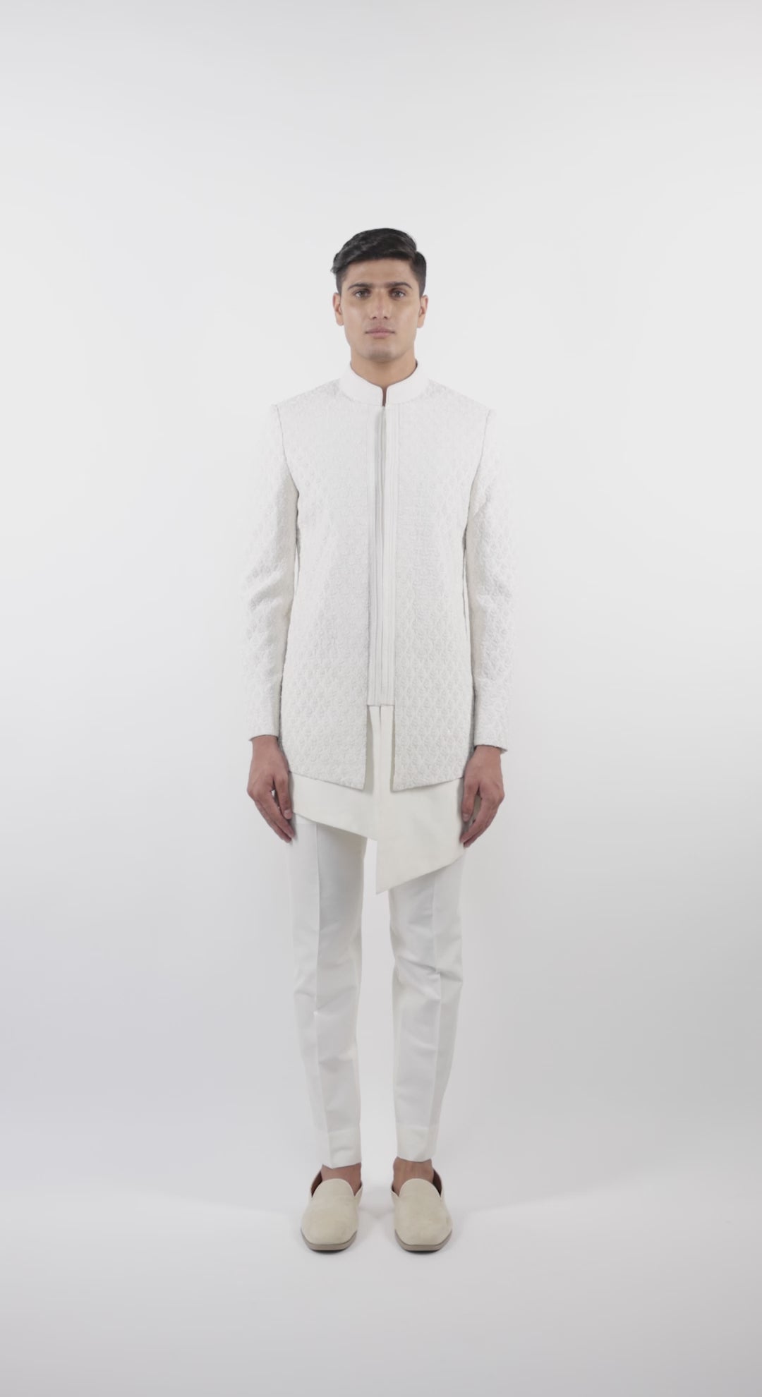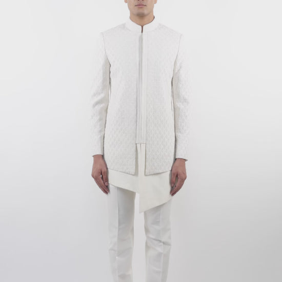 Ivory Silk Beaded Embroidery Asymmetric Hem Sherwani Set